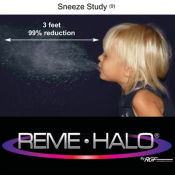 • REME® reduces sneeze germs by 99% in the time a sneeze can reach three feet.