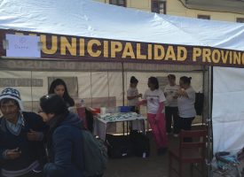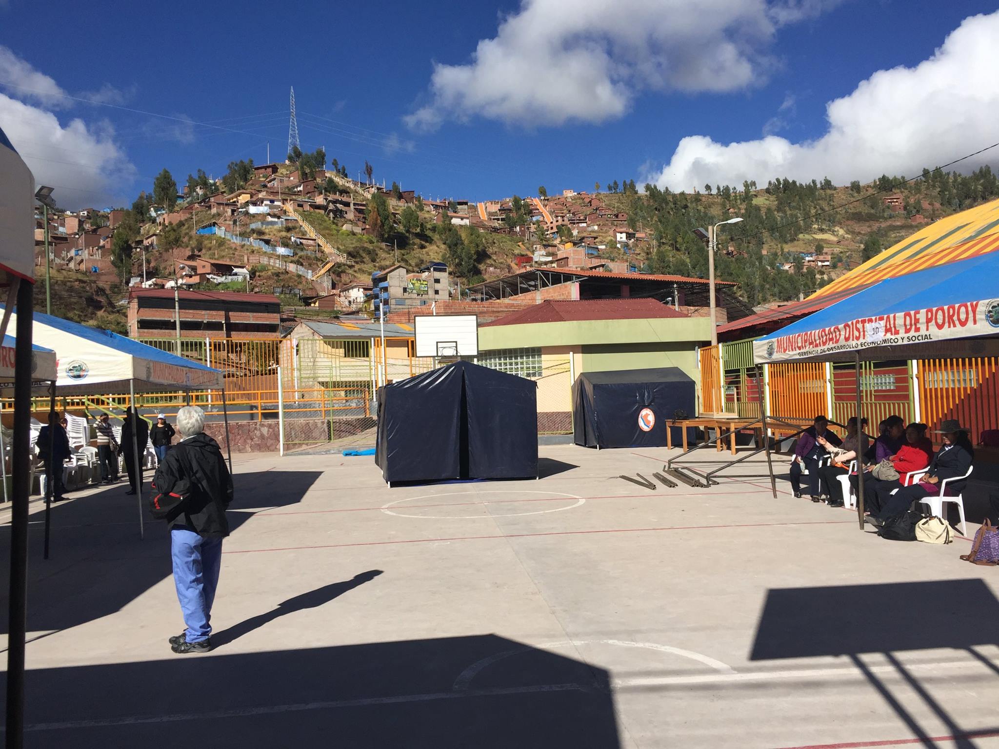 This translates as: “No food or drink for a half hour please.” We’ve been practicing this phrase mucho! Tuesday’s mission was spent in a municipality named Poroy, 20 minutes away from Cusco by bus. Since the schools were involved in organizing this event, many more children were seen this day than Monday. Over 100 fluoride treatments were done for the children of Poroy.