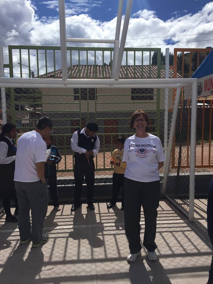 Wednesday’s mission was in a municipality named San Jeronimo. We set up inside a fenced cement soccer field. Mary, who couldn’t join us on Tuesday, is mostly recovered from the altitude and was able to rejoin the group. Many senior dental students and three of their professors joined the dental team. The students had an entire presentation for preschool children, dressed up as Olaf, Anna, and Elsa. Don’t worry, they didn’t play “Let it go.” They had a cute act and dance about sugar bugs and brushing your teeth.