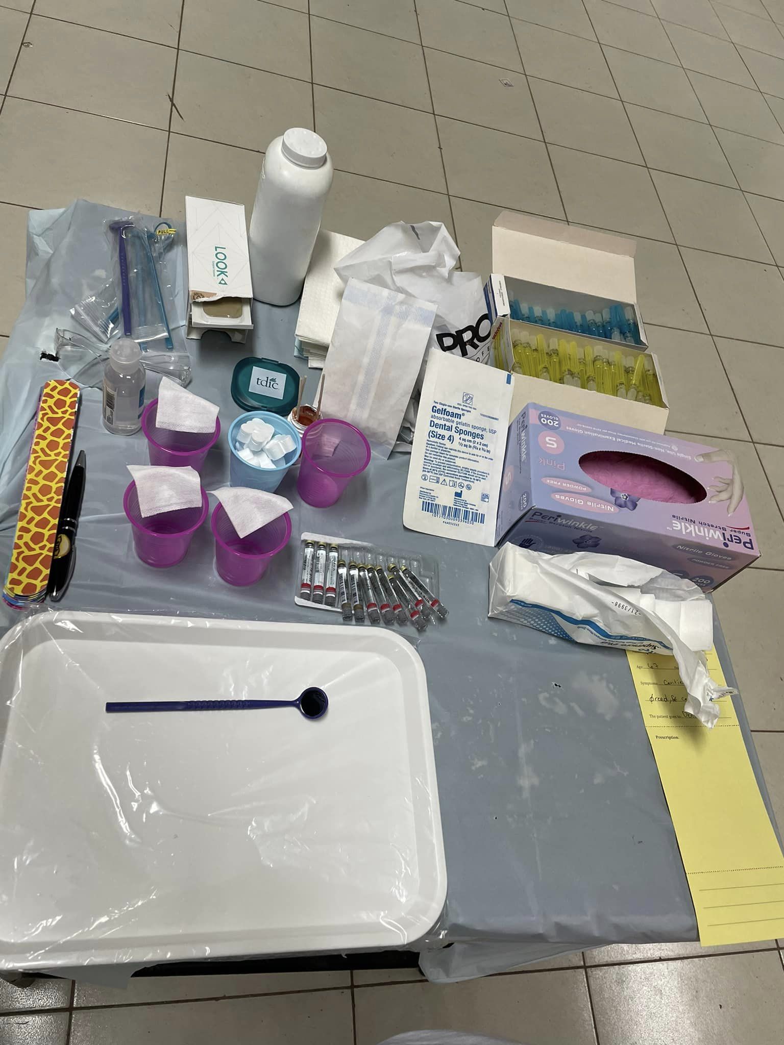 without electricity is a fun challenge! We take instruments and all of our supplies with us such as gauze, anesthetic, sutures, gloves and masks. Dentists also need to bring a headlamp