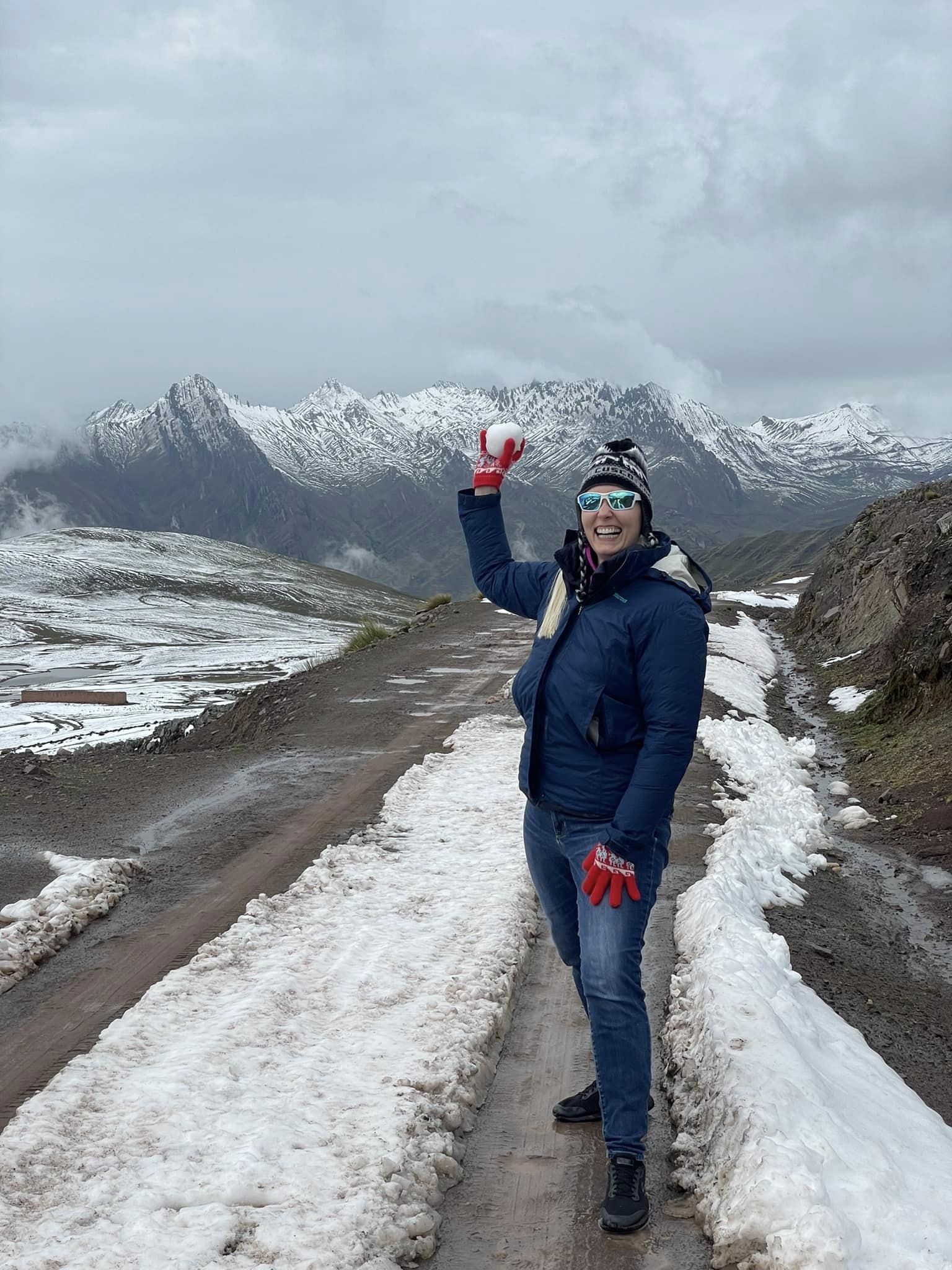 village called Sullumayo. This was higher than the previous clinic, which was at about 10,000 feet. Sullumayo is at 14,000 feet altitude, where it snowed the night before several inches! We stopped briefly on the way up to the village to make snowballs